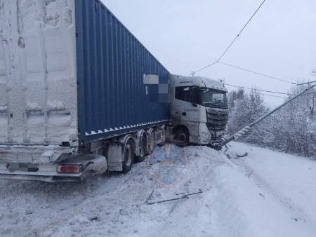 Сегодня на трассе М-10 водитель грузового автомобиля не справился с управлением и совершил столкновение со столбом. К месту происшествия выезжала дежурная смена поисково-спасательного отряда г. Тосно.